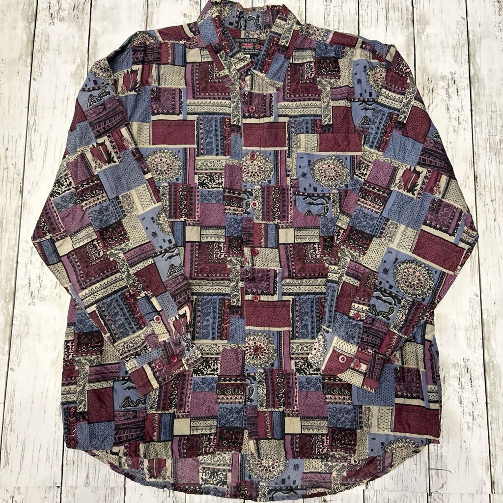 - FIONA MACPHAIL 総柄 柄シャツ シルクシャツ レトロ アート ビンテージ 長袖シャツ 絹100%