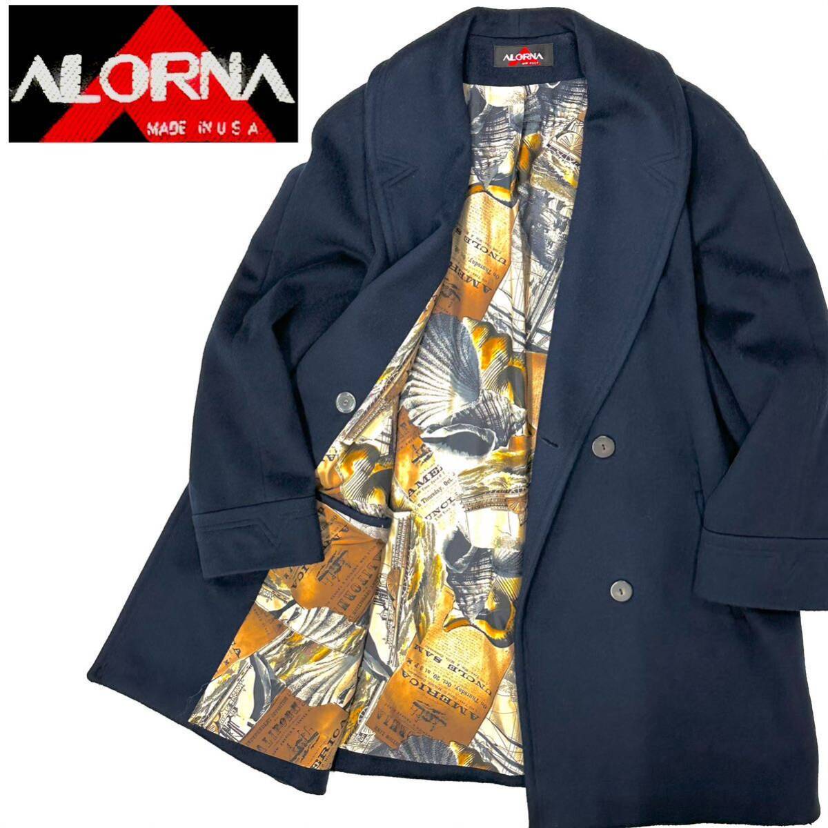 > 良品!希少◇80's USA製 Vintage ALORNA アローナ 総柄ライナー ウール レディース ダブル コート(ネイビー 紺色)アウター
