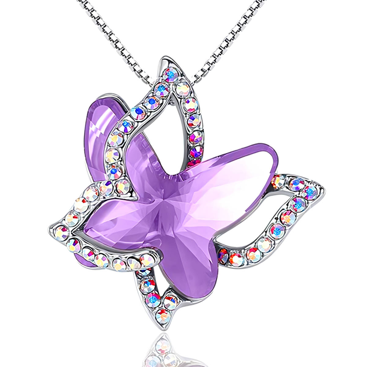 - 新品★送料無料★紫水晶ピンクアメジスト蝶 虹ダイヤ プラチナ仕上925シルバーネックレス誕生日プレゼント旅行初春連休ギフト国内発送