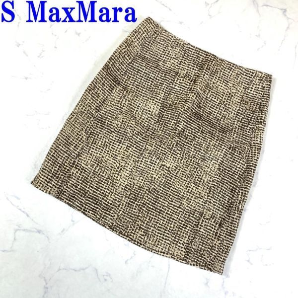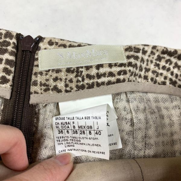 - エスマックスマーラ ひざ丈スカート リネン 総柄 ベージュS MaxMara タイト 38 C8906