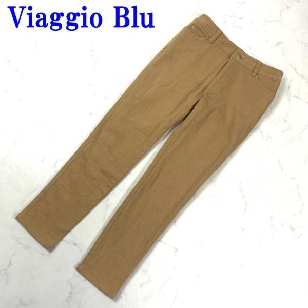 - ViaggioBluビアッジョブルーストレッチパンツベージュカジュアル ブランド刻印ボタン コットン ポリウレタン 1 C8980