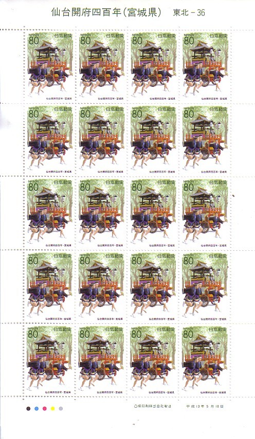 - 「仙台開府四百年(宮城県)」の記念切手です