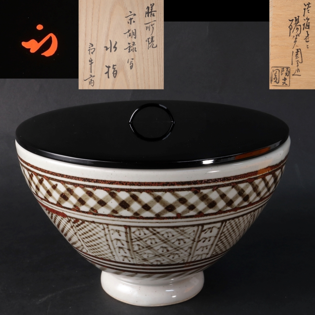 > ◆◇膳所焼 陽炎園 岩崎新定 宋胡録写 水指 久田宗也/尋牛斎書付・蓋裏花押あり 茶道具 淡海ぜぜ◇◆