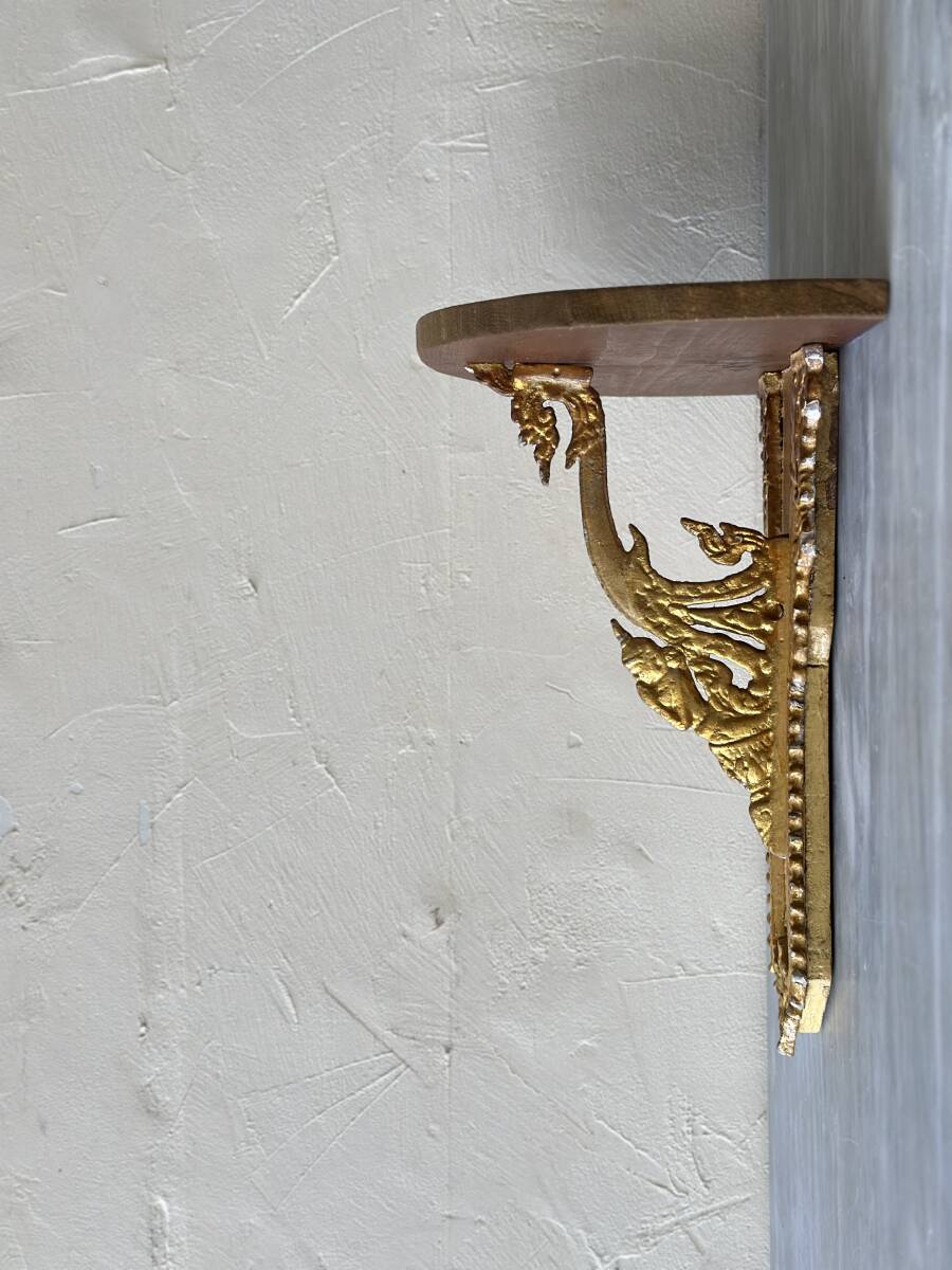 - タイ ヴィンテージ 木台 壁付け オブジェ 棚 インテリア ディスプレイ 古道具 古木 メタル 飾り棚