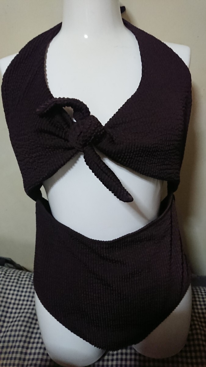 - M2040◆未使用品◆セレブなブラウンワンピース水着◆11L