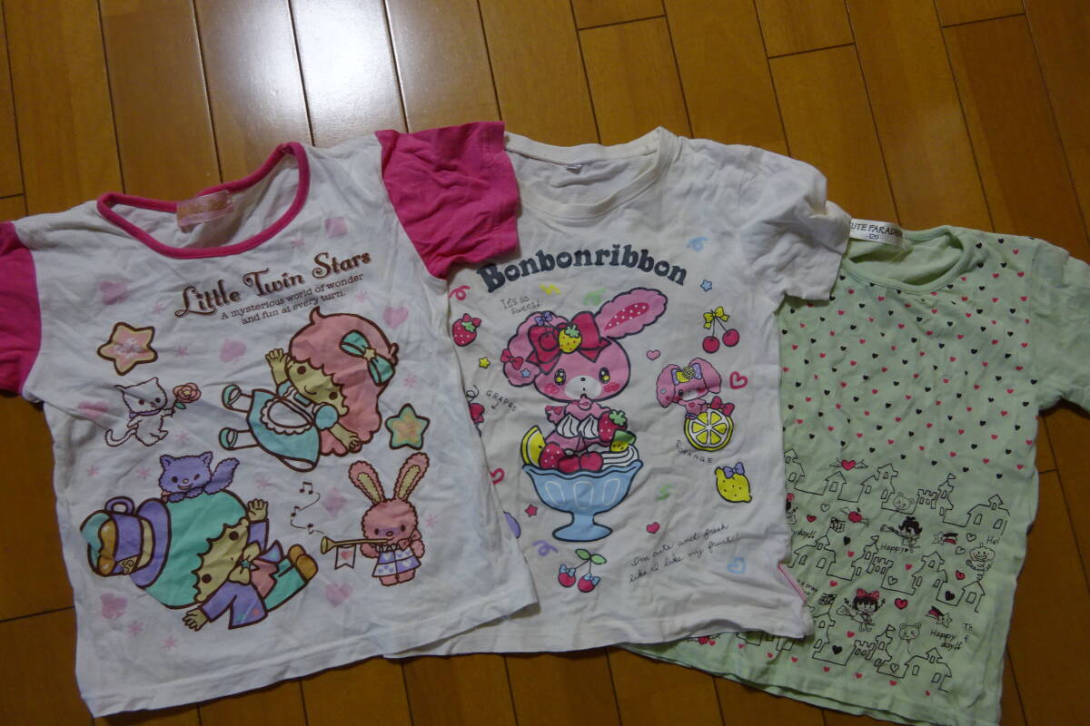 - 送料無料 3点セット キキララ ぼんぼんりぼん 半袖Tシャツ 綿100% 120cm