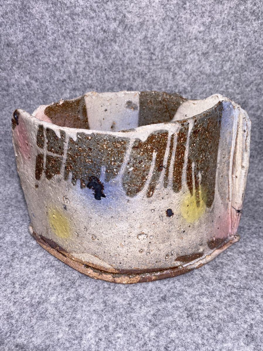 - 陶器作品 花瓶 作家不明 花入れ ★ 花器 フラワーベース カラフル 骨董 ビンテージ 器