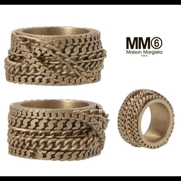 - ● MAISON MARGIELA MM6 メゾンマルジェラ 新品 リング 指輪 ブロンズ チェーン ユニセックス マルチチェーンディテール メタル イタリア製