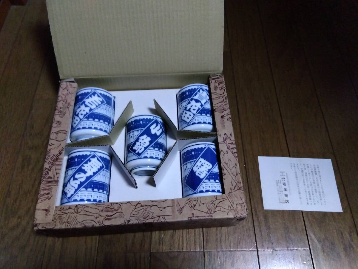 - 2fk 湯呑 相撲土産 若花田、貴花田、小錦、曙、舞の海 未使用品 5個セット 古いものなので汚れがあります。