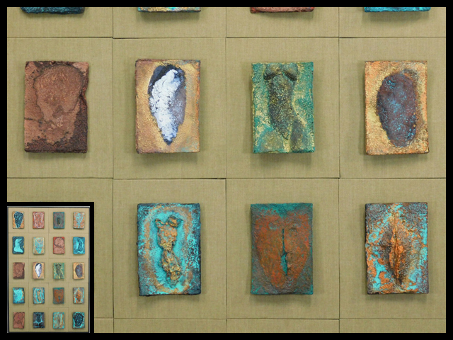 > 横地洋司 二十のオブジェ(アダムとイヴ)20点1組 ミクストメディア(油彩 銅粉)額装 共シール 2000年 専用紙箱 現代美術 具象展 s24021803