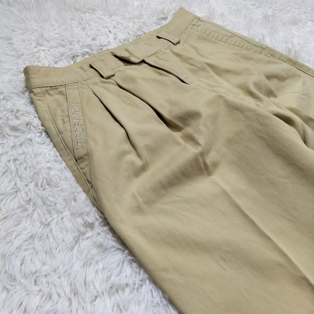 > ★23区SPORT オンワード樫山 スラックス コットンパンツ ゴルフ ツータック センタープレス イエロー 無地 メンズ W82 ブランド古着 USED