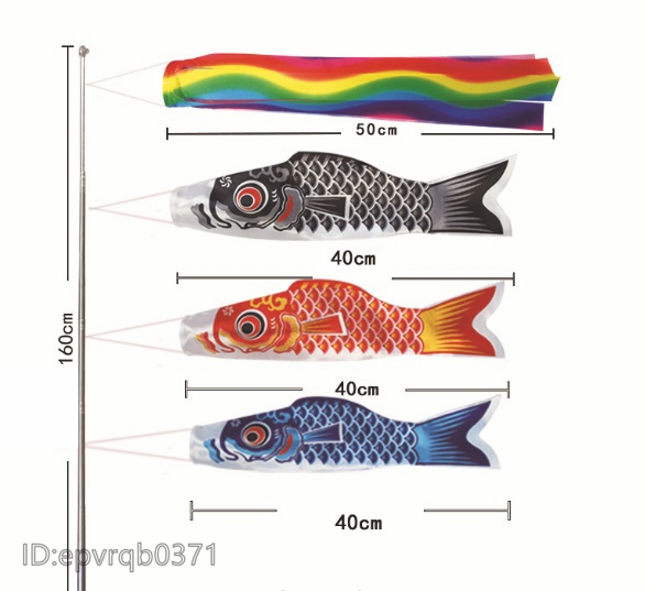 - 鯉のぼりセット※新品未使用 鯉3匹 吹流し 40センチ ポール付き こどもの日 庭園 こいのぼり 子どもの日