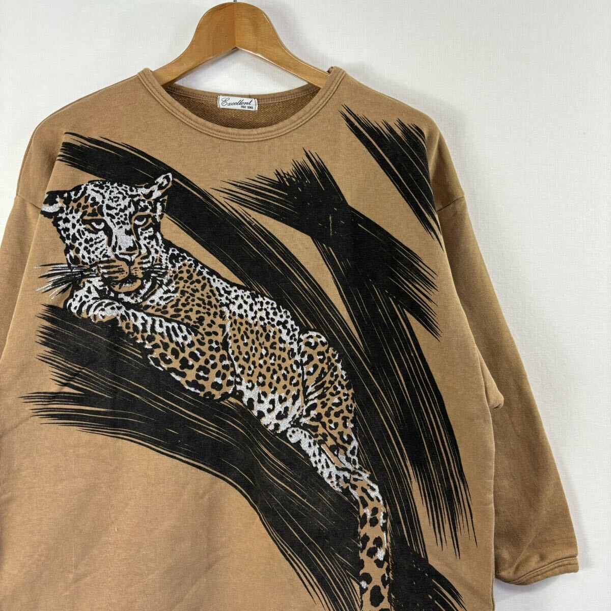- ビンテージ 80s【大判】ヒョウ柄 ロング スウェット 日本製 90s アニマル柄 豹 レトロ古着 ビッグサイズ 虎 Y2K 00s メンズ レオパード