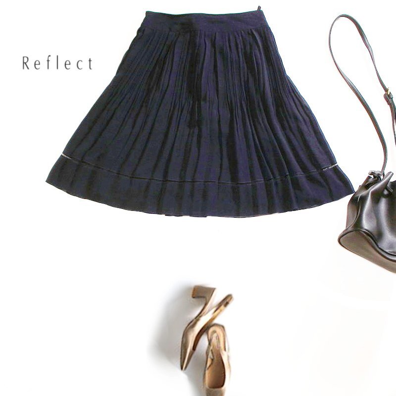 > リフレクト Reflect 株) ワールド プリーツ加工 ふんわり フレアスカート シフォンスカート 11号 40 ネイビー 紺 可愛い プリーツスカート
