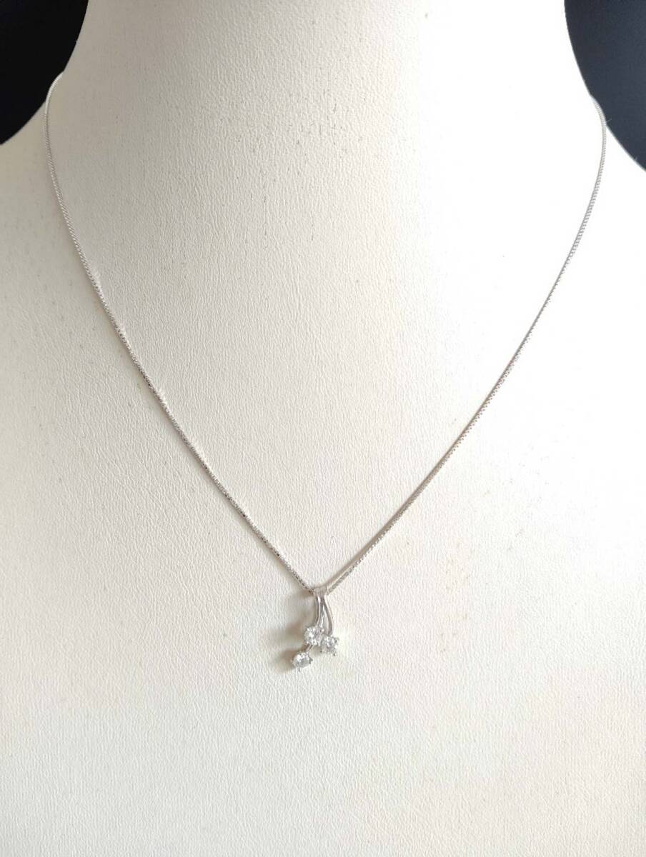 - ゴールドネックレス&ペンダント・K18 WG ・ダイヤモンドペンダント3石 0.3 ct
