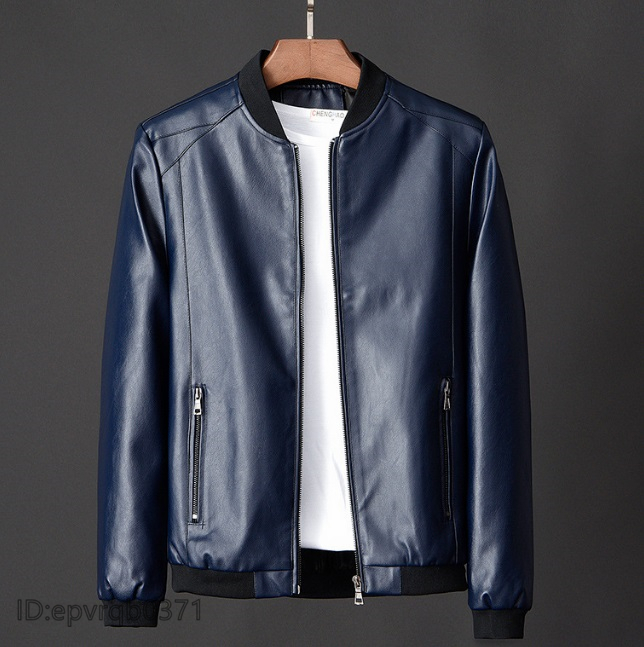 - 新入荷 スタジャン ライダース レザージャケット メンズ 革ジャン 紳士 バイクウェア アウター ファション ネイビー/Lサイズ