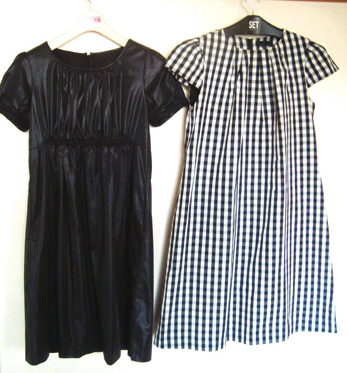 - ワンピース2枚 白黒チェック(FRAGILE)サイズ38 黒(RELE)サイズM 古着