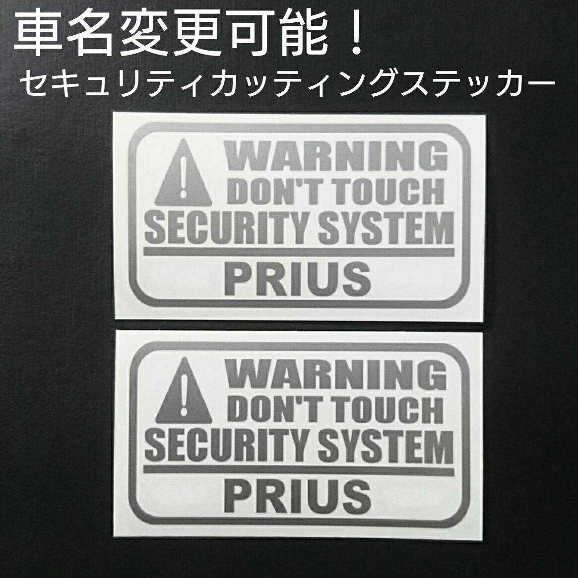 - 車名変更可能【セキュリティ】カッティングステッカー2枚セット(PRIUS)(シルバー)