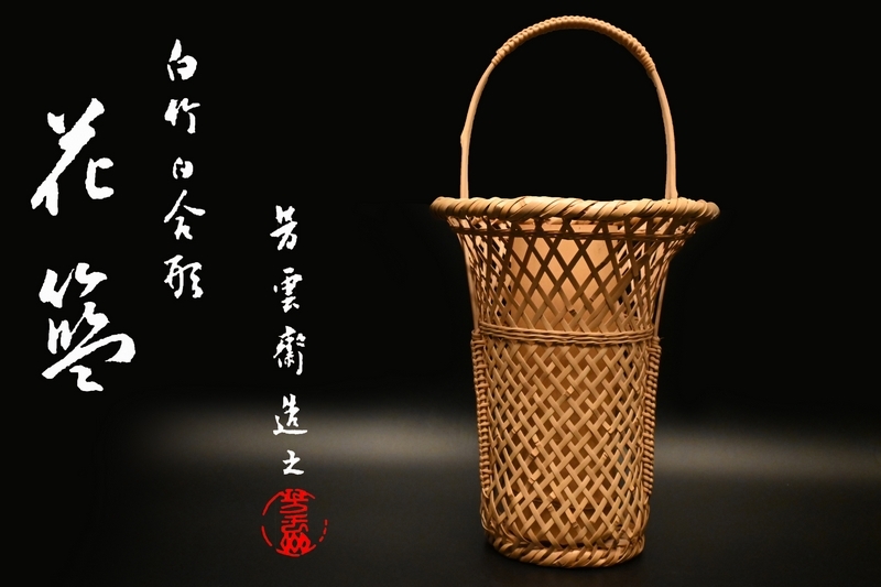 - 芳雲斎 造り 花篭 ■ 白竹百合形 花籠 茶道具 華道具 在銘 ■ 竹花入れ 花器 竹細工 天然木 布付 木箱入 №9697■