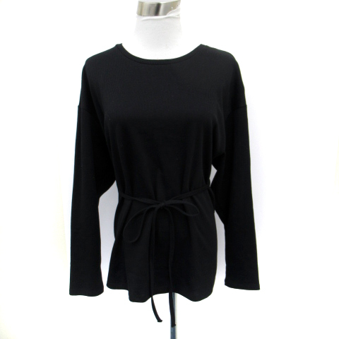 > 未使用品 アクアガール aquagirl カットソー 長袖 ラウンドネック リブ リボン 38 黒 ブラック /SM36 レディース