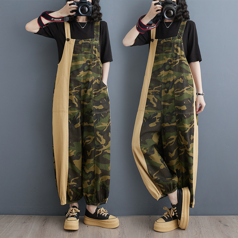 - レディースファッションアンティーク風 デニム ジーンズ 迷彩柄 オールインワンつなぎサロペットレディースサロペットパンツオーバーオール