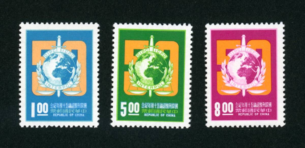 23001◆台湾1973◆ICPO (国際刑事警察機構) 50周年紀念3種完★極美品