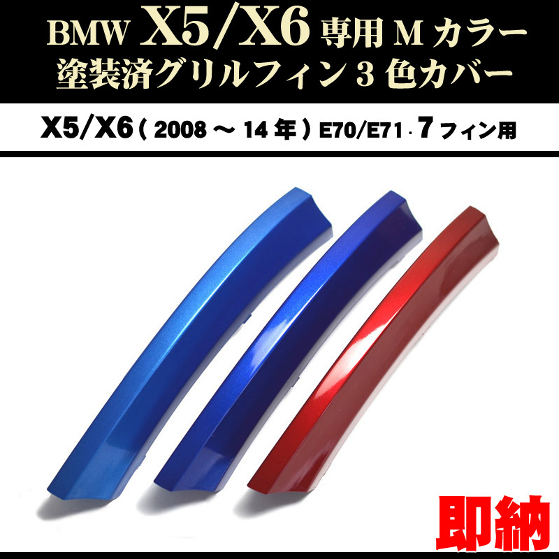 - 塗装済 BMW X5 X6 シリーズ E70 E71 Mカラー 3色 グリルフィン(07~14年) 7フィンモデル向 ネコポス便