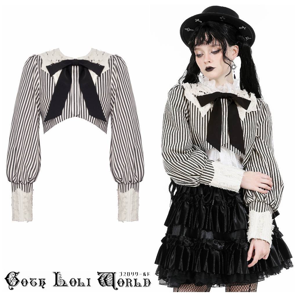 - JW260-S 白黒ストライプカットアウトダメージ襟ショート ジャケット ゴスロリワールド ゴシック パンク ロック ロリィタ ビジュアル系 V系