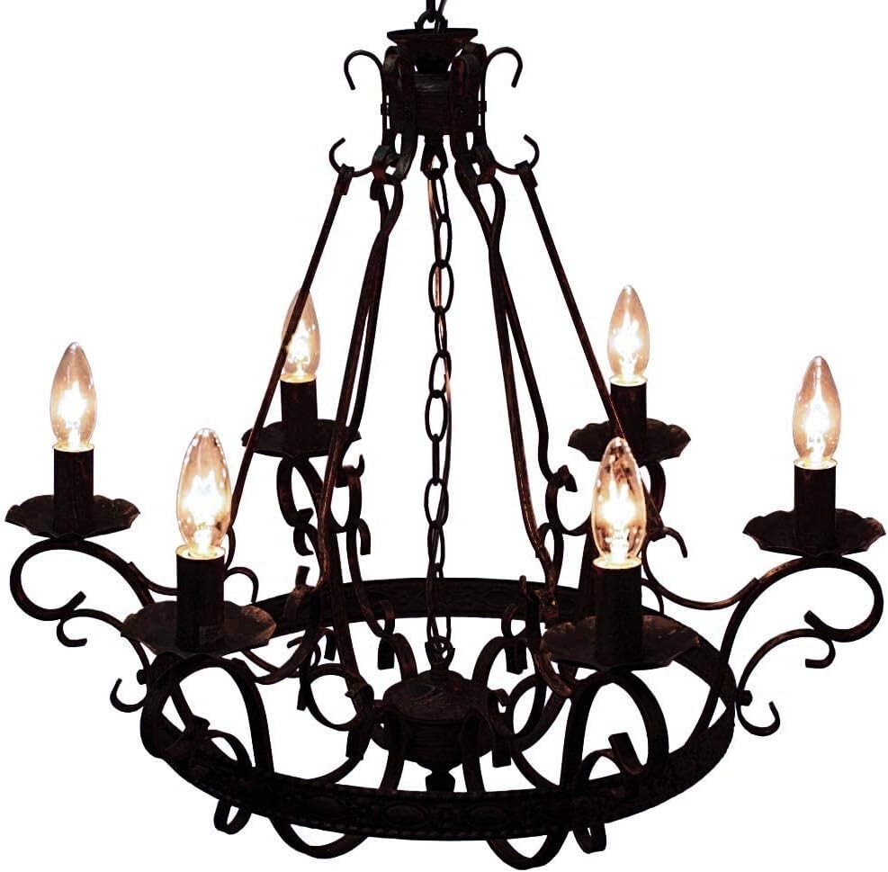 > Vill-age シャンデリア ブラック 男前 インテリア 照明器具 LED 対応 シャトー 6灯【白熱電球付属、ブラックアンティーク】