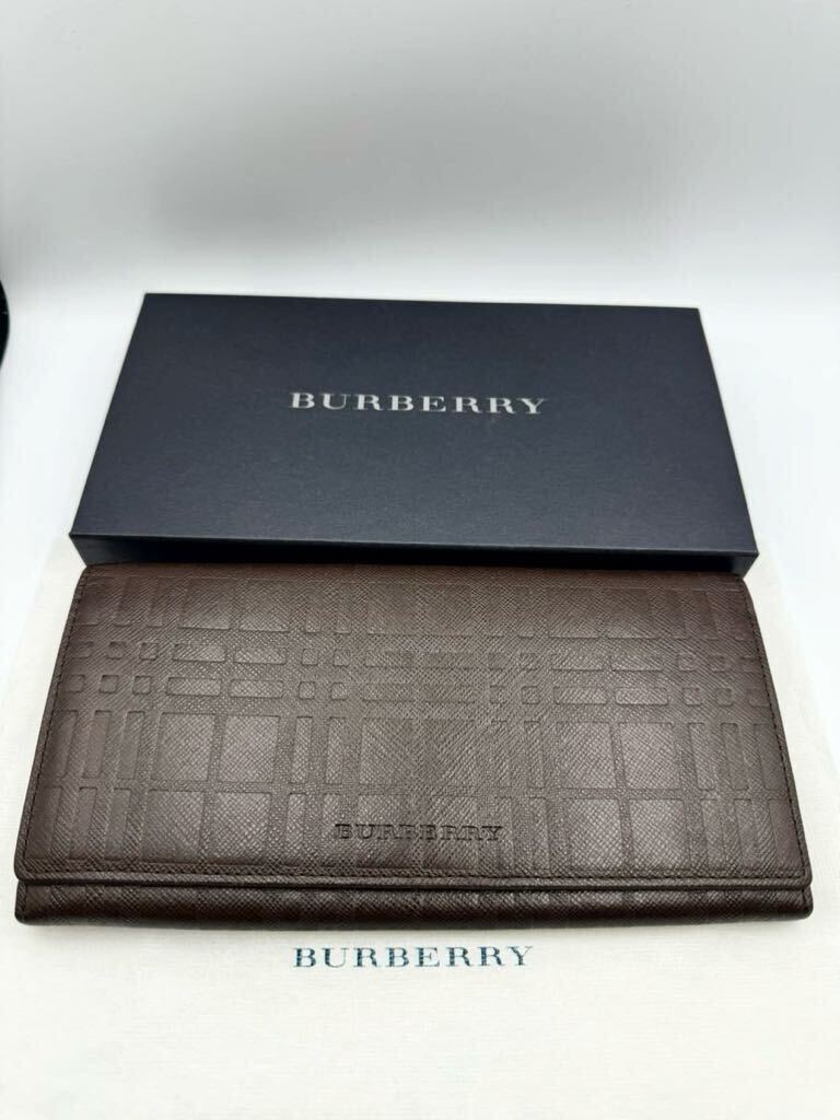 - 極美品 バーバリー 長財布 ダークブラウン チェック 小銭入れ付き レザー メンズ レディース カードケース コインケース