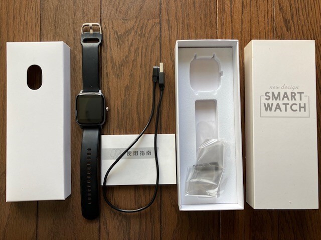 - ジャンク スマートウォッチ 充電時のみ画面ON ブラック、黒 日本語説明書あり USB充電コード 充電部端子ピン間3mm 送料無料 底値