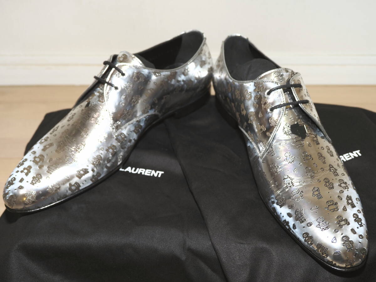 - 未使用品一部難あり SAINT LAURENT PARIS サンローラン 19SSメタリックレザーロボット柄ダービーシューズ41銀 Italy製