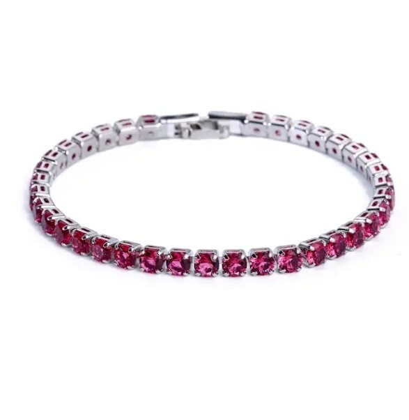 - 【ノーブランド】高級 4ミリ クリスタルブレスレット ゴールド シルバー ブレスレットチェーン ジュエリー【Metal Color: Red17cm】