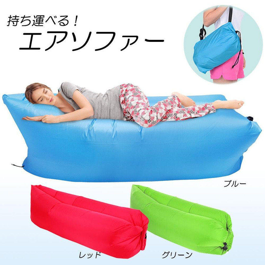- エアー ソファーピンク ベッド キャンプ アウトドア エア クッション マット 収納袋付き 海 ビーチ キャンプ 山 軽量 防水 丈夫