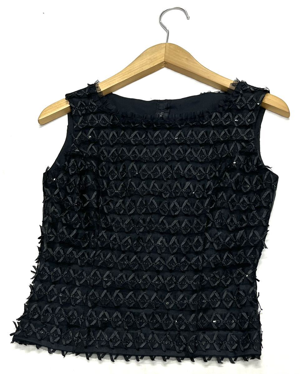 - CATLE CLUB★キャトルクラブ★(7号)リボン チュールレース ノースリーブ ブラウス トップス/黒系
