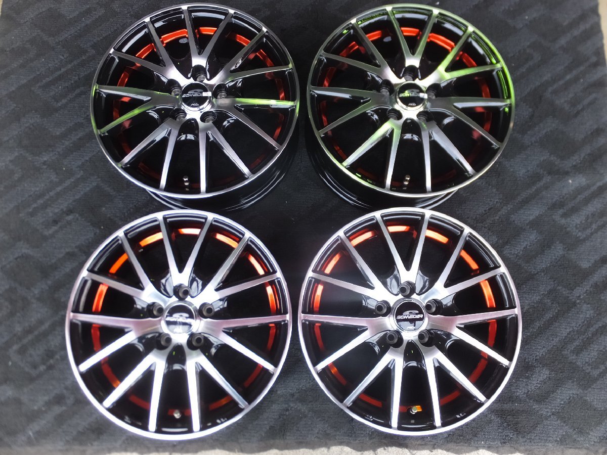 - 【店頭展示品ホイール4枚セット】 マルカサービス シュナイダー RX27 6.0J-15 5/100 +45 ブラックポリッシュレッドクリアー 15インチ
