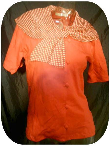 - ☆レトロ系☆ドット柄スカーフ風☆くるみボタントップスM