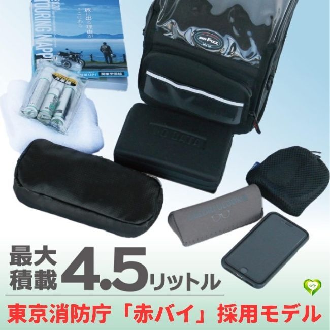 > 【東京消防庁「赤バイ」採用モデル!】バイク タンクバッグ ツーリング 4.5L タナックス(TANAX) 固定ベルト レインカバー付 手軽 安定走行