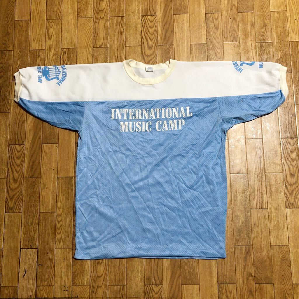 - 80s USA製 ARTEX フットボールシャツ メッシュ 水色 白 Mサイズ International Music Camp 古着 ヴィンテージ ナイロン