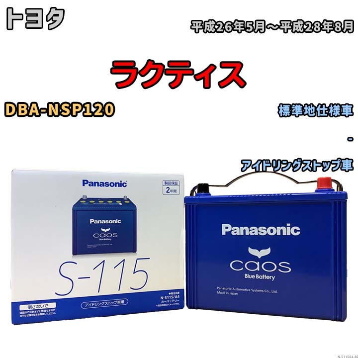 > パナソニック caos(カオス) トヨタ ラクティス DBA-NSP120 平成26年5月~平成28年8月 N-S115A4 ブルーバッテリー安心サポート付