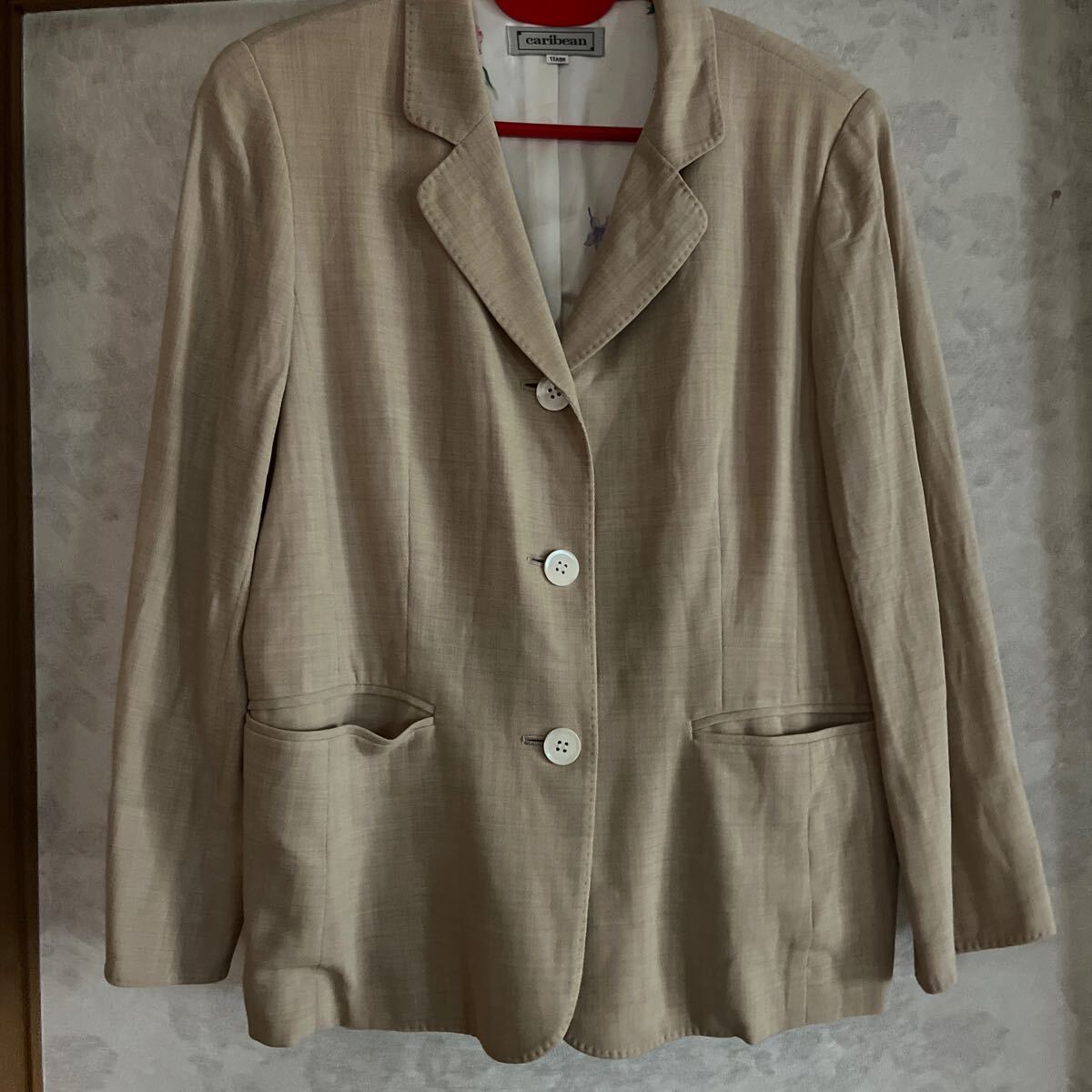- ★caribean★ジャケット 長袖 11ABR 生成り ポケット付 裏地にお花いっぱい 毛(キングランドウール100%麻のような質感 裏地キュプラ100%