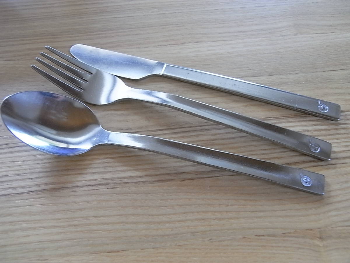 - 傷だらけ・中古/カタール航空の機内カトラリー ナイフ フォーク スプーン3点