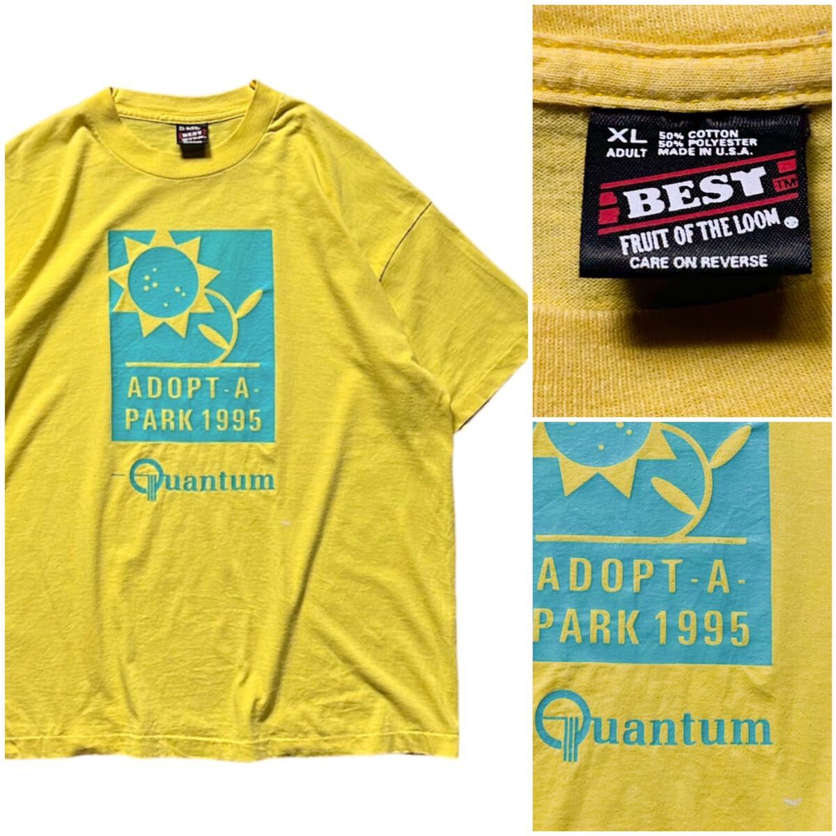 - USA製 90’s FRUIT OF THE LOOM フルーツオブザルーム ヴィンテージ Tシャツ 黄色 イエロー XLサイズ シングルステッチ 花 ひまわり ‘95