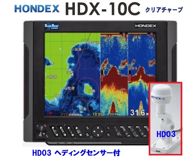> HDX-10C 600W HD03付 振動子 TD320 クリアチャープ魚探搭載 10.4型 GPS魚探 HONDEX ホンデックス