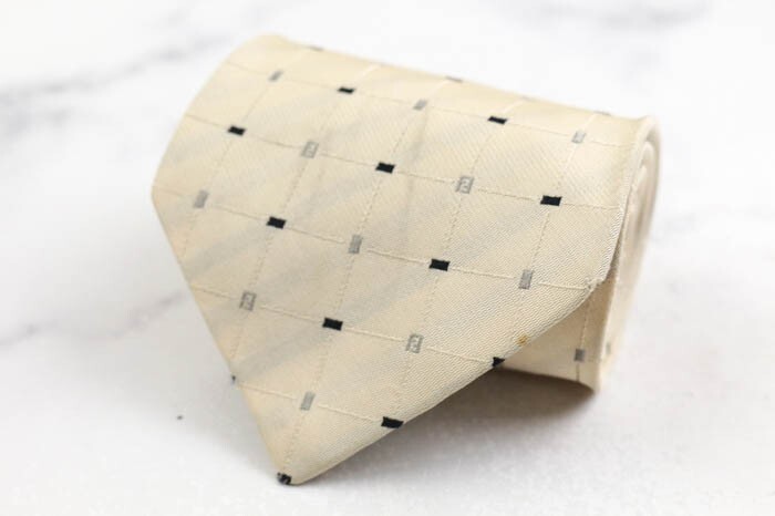 - フェンディ シルク ズッカ柄 格子柄 パネル柄 イタリア製 ブランド ネクタイ メンズ ベージュ FENDI