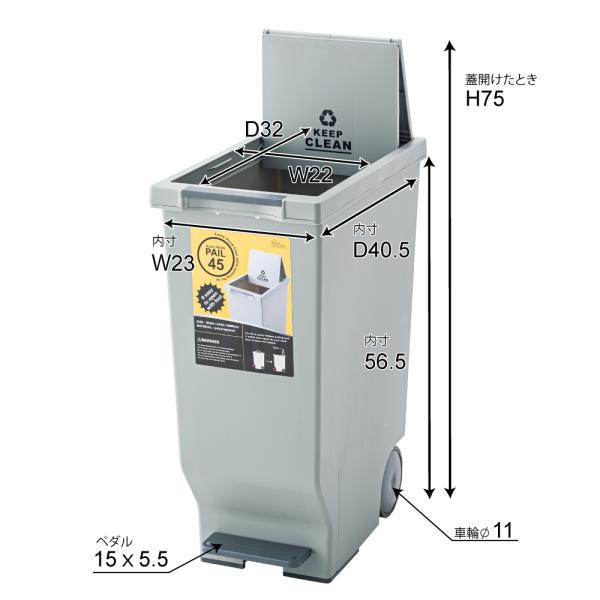 - スライドペダルペール 45L ホワイト ダストボックス ごみ箱 おしゃれ フタ付 キャスター付き 日本製 AZ-LFS-764WH