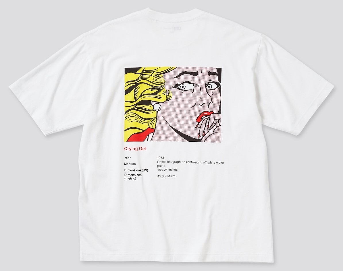 > 2021 UNIQLO×Roy Lichtenstein コラボ UT Tシャツ『Crying Girl 泣く女』丸首 半袖 白 前後プリント M・身幅約55.5cm※未開封品/未使用品