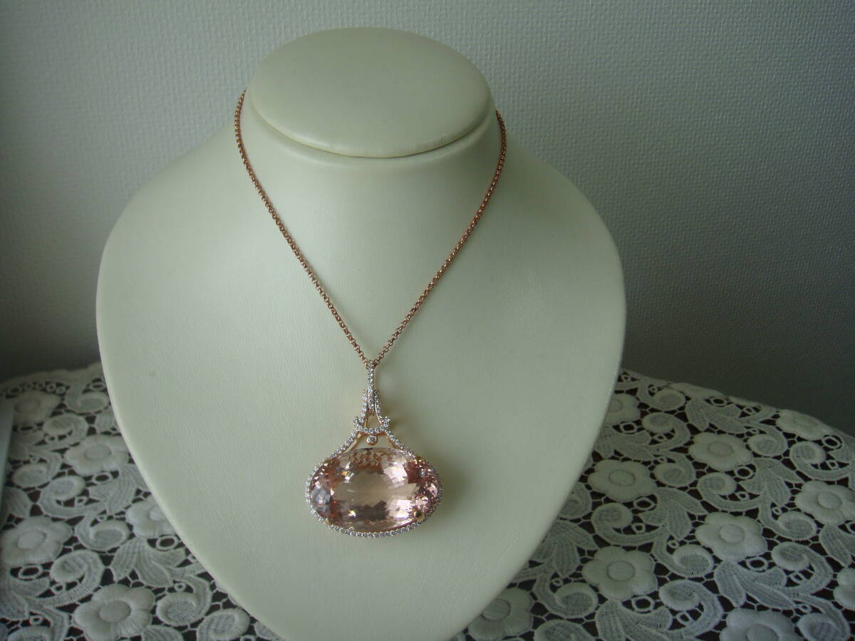 - ◎セレブリティー 超特大 モルガナイト ダイヤモンド ペンダント ピンクエメラルド 鑑別書付き◎