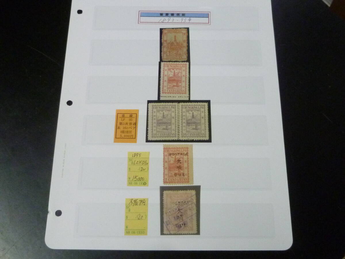 > 22 M №52 旧中国切手 重慶書信館 1893-95年 JPS#LP90-97の内 2次普通・他 16cペア(中間二重目打)含 計4種+ペア 未使用OH(済1含)・VF