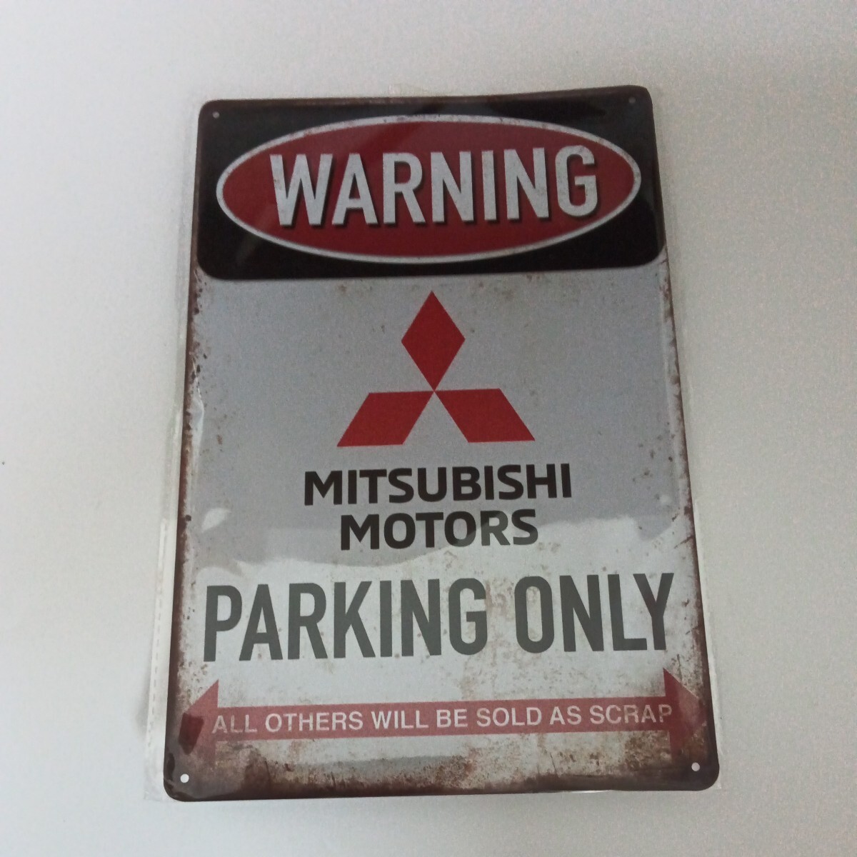 - 三菱 ミツビシ クラッシック風 ブリキ看板 ガレージ PARKING ONLY